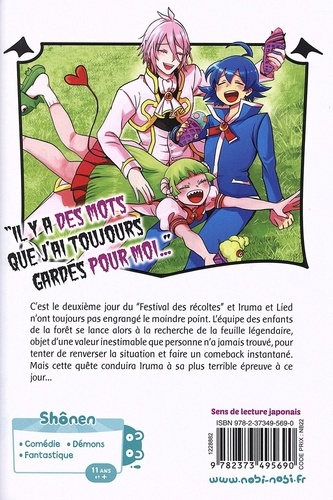 C'est le deuxième jour du "Festival des récoltes" et Iruma et Lied n'ont toujours pas engrangé le moindre point. L'équipe des enfants de la forêt se lance alors à la recherche de la feuille légendaire, objet d'une valeur inestimable que personne n'a jamais trouvé, pour tenter de renverser la situation et faire un comeback instantané. Mais cette quête conduira Iruma à sa plus terrible épreuve à ce jour...