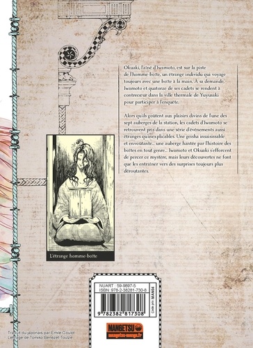 Okuaki, l'aîné d'Iwamoto, est sur la piste de l'homme-boîte, un étrange individu qui voyage toujours avec une boîte à la main. A sa demande, Iwamoto et quatorze de ses cadets se rendent à contrecoeur dans la ville thermale de Yuyusaki pour participer à l'enquête. Alors qu'ils goûtent aux plaisirs divins de l'une des sept auberges de la station, les cadets d'Iwamoto se retrouvent pris dans une série d'événements aussi étranges qu'inexplicables. Une geisha insaisissable et envoûtante... une auberge hantée par l'histoire des boîtes en tout genre... Iwamoto et Okuaki s'efforcent de percer ce mystère, mais leurs découvertes ne font que les entraîner vers des surprises toujours plus déroutantes.