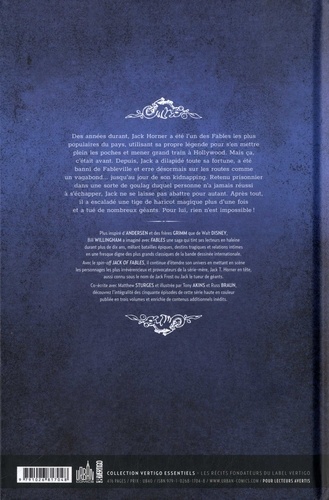 Des années durant, Jack Horner a été l'un des Fables les plus populaires du pays, utilisant sa propre légende pour s'en mettre plein les poches et mener grand train à Hollywood. Mais ça, c'était avant. Depuis, Jack a dilapidé toute sa fortune, a été banni de Fableville et ère sur les routes comme un vagabond... Jusqu'au jour de son kidnapping. Retenu prisonnier dans une sorte de goulag duquel personne n'a jamais réussi à s'échapper, Jack ne se laisse pas abattre pour autant. Après tout, il a escaladé une tige de haricot magique plus d'une fois et a tué de nombreux géants. Pour lui, rien n'est impossible ! Contenu : Jack of Fables - The Deluxe Edition Book One (#1-16). Plus inspiré d'Andersen et des frères Grimm que de Walt Disney, Bill Willingham a imaginé avec Fables une saga qui tint ses lecteurs en haleine durant plus de dix ans, mêlant batailles épiques, destins tragiques et relations intimes en une fresque digne des plus grands classique de la bande dessinée internationale. Avec le spin-off Jack of Fables, il continue d'étendre son univers en mettant en scène les personnages les plus irrévérencieux et provocateurs de la série-mère, Jack T. Horner en tête, aussi connu sous le nom de Jack Frost ou Jack le tueur de géants. Co-écrite avec Matthew Sturges et illustrée par Tony Atkins et Russ Braun, découvrez l'intégralité des cinquante épisodes de cette série haute en couleur publiée en trois volumes et enrichie de contenus additionnels inédits.