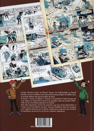 L'intégralité des planches de Jacky et Célestin dessinées par François Walthéry de 1964 à 1965 La série crée par Peyo et Will en 1961 est confiée à Walthéry en 1964 après 4 histoires dessinées par Will et Azara. Il en dessinera 4 autres avant de passer le flambeau à Francis et Leloup fin 1964 pour reprendre Benoît Brisefer, autre création de Peyo et Will. Outre les 4 épisodes dessinés par François Walthéry, ce volume d'intégrale comporte un volumineux dossier signé Bertrand Pissavy, grand spécialiste du genre.