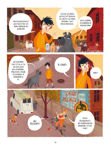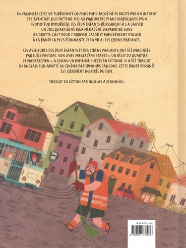 En vacances chez sa turbulente cousine mimi, Jacob ne se doute pas un instant de l'aventure qui l'attend. Mis au parfum des plans diaboliques d'un promoteur immobilier, les deux enfants réussiront-ils à sauver un joli quartier de Riga menacé de disparaître sous les gratte-ciel ? Pour y arriver, Jacob et Mimi devront s'allier à la bande la plus étonnante de la ville : les chiens parlants. Les aventures des deux enfants et des chiens parlants ont été imaginées par Luïze Pastore. Son livre Maskackas Stasts "un récit du quartier de Maskatchka", a connu un immense succès en Lettonie. il a été traduit en anglais puis adapté au cinéma par Edmunds Jansons. Cette bande dessinée est librement inspirée du film.
