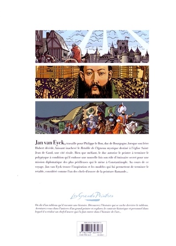 Peut-on à la fois être peintre et espion ? Gand, le 14 septembre 1426. Hubert Van Eyck décède prématurément alors qu'il travaillait sur le Retable de l'Agneau mystique, une pièce destinée à l'église Saint-Jean. Ce travail inachevé met son commanditaire, le marchand Joost Vijdt, dans l'embarras. Mais Van Eyck avait un frère, qu'il avait initié à la peinture, et qui pourrait bien être en mesure de terminer l'oeuvre... La mort soudaine de son frère pousse Jan Van Eyck, alors au service du duc de Bourgogne comme peintre et émissaire secret, à s'interroger sur le sens de sa propre vie. Il se demande s'il ne ferait pas mieux de retourner à ses pinceaux. Magnanime, son maître l'autorise à terminer le retable, à l'aide d'un nouveau procédé pictural tenu secret, s'il accepte une dernière mission diplomatique pour Constantinople. C'est justement au cours de ce voyage que Jan Van Eyck va trouver l'inspiration et les modèles pour achever l'oeuvre de son frère...