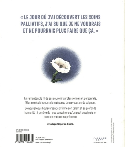 " Le jour où j'ai découvert les soins palliatifs, j'ai su que je ne voudrais et ne pourrais plus faire que ça". En remontant le fil de ses souvenirs professionnels et personnels, l'Homme étoilé raconte la naissance de sa vocation de soignant. Ce nouvel opus bouleversant confirme son talent et sa profonde humanité : il achève de nous convaincre qu'on peut aussi soigner avec ses mots et sa présence. Avec la participation d'Alma.
