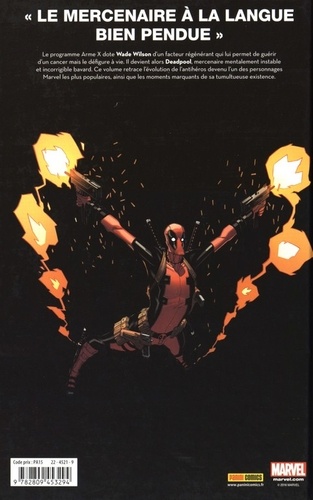 Le programme Arme X dote Wade Wilson d'un facteur régénérant qui lui permet de guérir d'un cancer mais le défigure à vie. Il devient alors Deadpool, mercenaire mentalement instable et incorrigible bavard. Ce volume retrace l'évolution de l'antihéros devenu l'un des personnages Marvel les plus populaires, ainsi que les moments marquants de sa tumultueuse existence.