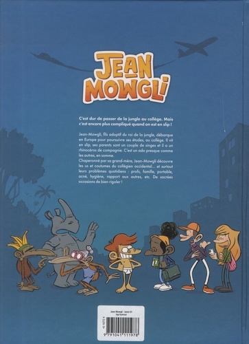 C'est dur de passer de la jungle au collège. Mais c'est encore plus compliqué quand on est en slip ! Jean-Mowgli, fils adoptif du roi de la jungle, débarque en Europe pour poursuivre ses études, au collège. Il vit en slip, ses parents sont un couple de singes et il a un rhinocéros de compagnie. C'est un ado presque comme les autres, en somme. Chaperonné par sa grand-mère, Jean-Mowgli découvre les us et coutumes du collégien occidental... et surtout leurs problèmes quotidiens : profs, famille, portable, acné, hygiène, rapport aux autres, etc. De sacrées occasions de bien rigoler !