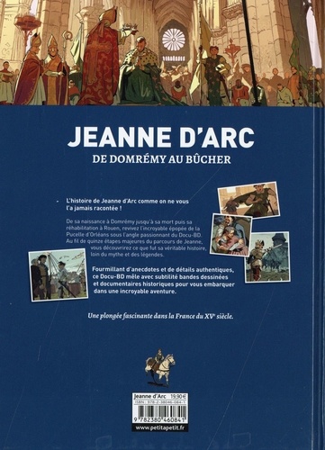 De Domrémy à Rouen, suivez en 15 étapes, le parcours de "la Pucelle d'Orléans" . Revivez le destin incroyable de cette jeune paysanne, qui ayant entendu la voix de Dieu, parvient à convaincre le roi de France de lui confier une armée pour combattre les Anglais et inverser le cours de la guerre de Cent Ans. Sous l'angle inédit du Docu-BD, mêlant bandes dessinées et pages documentaires riches en archives, cet album vous conte l'histoire de Jeanne d'Arc au fil des quinze villes où elle fit étape. Sous l'angle inédit du Docu-BD, découvrez l'histoire de Jeanne d'Arc au fil de quinze villes emblématiques qui ont marqué son histoire.