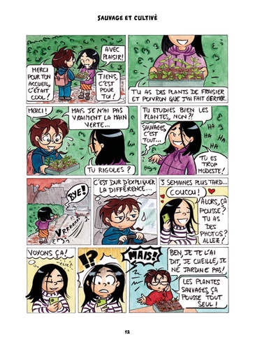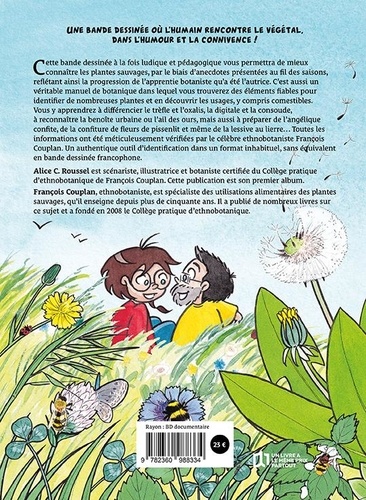 Cette bande dessinée à la fois ludique et pédagogique vous permettra de mieux connaître les plantes sauvages, par le biais d'anecdotes présentées au fil des saisons, reflétant ainsi la progression de l'apprentie botaniste qu'a été fautrice. C'est aussi un véritable manuel de botanique dans lequel vous trouverez des éléments fiables pour identifier de nombreuses plantes et en découvrir les usages, y compris comestibles. Vous y apprendrez à différencier le trèfle et l'oxalis, la digitale et la consoude, à reconnaître la benoîte urbaine ou l'ail des ours, mais aussi à préparer de l'angélique confite, de la confiture de fleurs de pissenlit et même de la lessive au lierre... Toutes les informations ont été méticuleusement vérifiées par le célèbre ethnobotaniste François Couplan. Un authentique outil d'Identification dans un format inhabituel, sans équivalent en bande dessinée francophone.