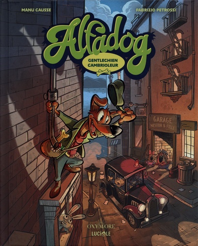 SIGNE MANU CAUSSE ET FABRIZIO PETROSSI, "ALFADOG" CONTE LES AVENTURES HALETANTES D'UN GENTLECHIEN CAMBRIOLEUR AU GRAND COUR. Alfadog, gentlechien cambrioleur et ennemi public numéro 1 du temps de sa splendeur, vient de s'échapper d'une prison de haute sécurité. C'est la panique à Dogoville et, comme à l'époque, l'inspecteur Mc Crockett est sur l'affaire, ne luilaissant aucun répit. Victime d'une odieuse machination, Alfadog se retrouvera malgré lui au coeur d'un cambriolage... le vol d'une oeuvre d'art inestimable au musée de Dogoville ! Parviendra-t-il à échapper à la police ? ... Un polar "pour rire" bourré de clins d'oeil aux classiques du film noir.