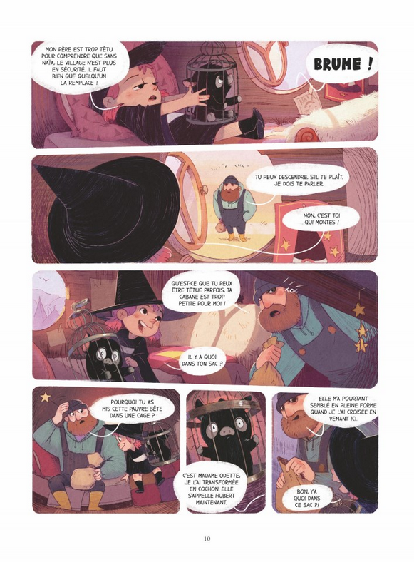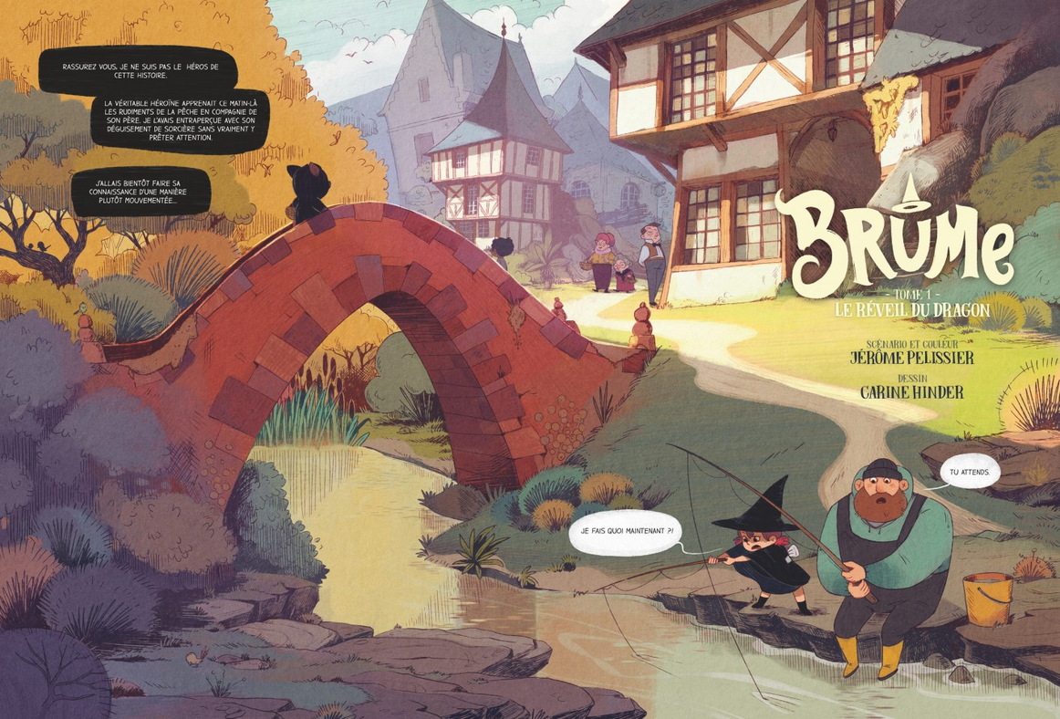 Apprentie sorcière : croire en soi reste le plus puissant des sortilèges ! Recueillie dans la forêt par un père aimant, Brume est une petite fille espiègle qui ne rêve que d'une seule chose : devenir sorcière ! Le jour où son papa adoptif lui dévoile l'ouvrage secret qui entoure sa naissance, un grimoire de magie, tout s'éclaire. Et si Brume était une véritable sorcière ? Et la voilà, traînant un chaudron d'occasion derrière elle, prête à ouvrir sa première échoppe de sorcière ! N'en faisant qu'à sa tête, elle recrute en chemin son assistant, un petit cochon prénommé Hubert, et se lie d'amitié avec Hugo, un petit garçon ravi de l'aider dans cette entreprise exaltante. Mais Brume ne semble pas avoir les aptitudes d'une véritable sorcière... Ses sorts ne produisent aucun effet. Quant à sa première potion, elle vient de plonger tout le village dans un épais brouillard ! Peu importe : convaincue de la puissance de ses pouvoirs, elle décide de s'engouffrer dans la forêt interdite pour combattre un dragon légendaire qu'elle tient pour seul responsable de ce brouillard nauséabond. Têtue, déterminée et un brin arrogante, elle va entraîner Hugo et Hubert dans une folle aventure qui va en surprendre plus d'un. Et si Brume avait réellement un don et une destinée hors du commun ? Jérôme Pélissier et Carine Hinder entrent au catalogue Glénat avec une série désopilante mettant en scène une petite héroïne forte, drôle et attachante qui évolue dans univers hors du temps. Le dessin très doux et soigné de Carine Hinder et le scénario rythmé de Jérôme Pélissier font de cette trilogie la série jeunesse de la rentrée à ne pas manquer !