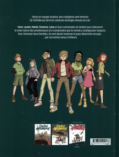 Nos collégiens ont commencé leur long voyage pour retrouver leur famille. En chemin, ils découvrent un étrange village... Quelques jours après leur départ, Yann, Louise, Mehdi, Florence et Léna arrivent dans un village qui semble désert. Pour refaire leurs réserves de provisions, les ados explorent les maisons quand les envahisseurs les surprennent et les attaquent. Se battant pour leurs vies, nos héros vont se rendre compte que le village est le théâtre d'un terrible combat entre les habitants et des êtres venus d'ailleurs...