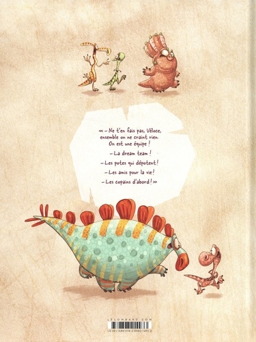 Véloce, notre héroïque (et peureux) vélociraptor, et ses amis ont réussi à tenir tête à la redoutable Tyrannie ! Sains et saufs, ils reprennent leur route vers la montagne de feu à la recherche du sage ankylosaure. Mais le chemin est semé d'embûches, et les paysages deviennent plus secs et ravagés par les traces de lave... Encore une menace ! Heureusement que la petite bande a plus d'un tour dans son sac, et qu'ensemble, ils sont les potes qui dépotent... car l'ennemi n'est pas toujours celui qu'on imagine !
