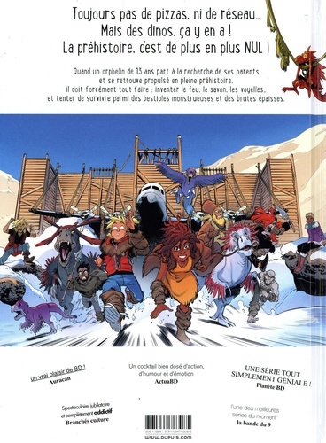 A la suite d'une éruption, toute la tribu s'est réfugiée sur un tronc d'arbre, embarcation de fortune, pour fuir la colère du volcan. Comme Franck est le dernier à avoir vu Léonard et Gargouille vivants, tout le monde l'accuse de les avoir laissés mourir... Et il peut difficilement expliquer qu'ils ont été expédiés au XXIe siècle via le lac par lequel lui-même est arrivé à la préhistoire ! La discussion est interrompue par l'attaque d'un monstre marin qui les flanque tous à l'eau. Franck manque de se noyer mais est sauvé par un personnage curieusement familier qui lui explique que, pour un massage cardiaque, il faut faire de petites poussées sur le rythme de Stayin' Alive des Bee Gees... Franck ne serait donc pas le seul voyageur temporel ! FRNCK, c'est de la grande aventure humoristique bourrée de coups de théâtre avec une vraie réflexion sur ce que sont la modernité et l'humanité.