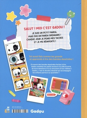 Par le créateur de Mortelle Adèle. Un héros pour se découvrir en explorant le monde ! Gadou est un petit panda, mais pas un panda ordinaire ! Il est né tout blanc. Et depuis, chaque jour, il peint ses taches et se réinvente. Gadou était la peluche de Mr Tan quand il avait cinq ans. Il l'emmenait partout et ce bon copain l'aidait à surmonter les moments difficiles. Quand Mr Tan a grandi, ça été au tour de Gadou de découvrir le monde et sa personnalité ! A travers des bandes dessinées faciles à lire - sous forme de yonkomas, suite de 4 cases à lire dans l'ordre de haut en bas - Gadou emmène les petits lecteurs à la découverte de leurs émotions et à la rencontre d'eux-mêmes. Gadou est la première série écrite et illustrée par Mr Tan ! Retrouvez Gadou et son univers sur gadou. fr