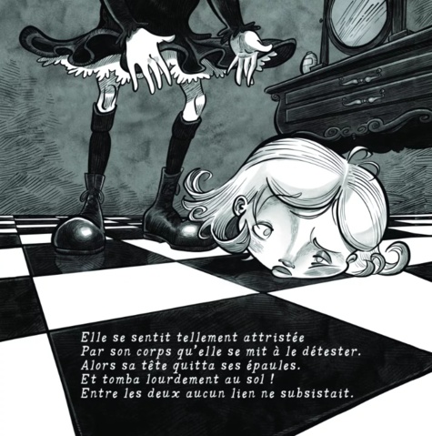 Gwendoline Guillotine est la nouvelle oeuvre de Théophile Peuplier. Il s'agit d'une fable gothique illustrée de 48 pages avec une couverture rigide. Si vous aimez les contes étranges à la Tim Burton, découvrez la vie d'une petite fille dotée à la naissance... d'une particularité physique, le tout écrit en poésie ! Avec un univers riche dévoilé par des illustrations teintées d'une ambiance gothique, le récit vous plonge dans une aventure mystérieuse et originale sur l'acceptation de soi.