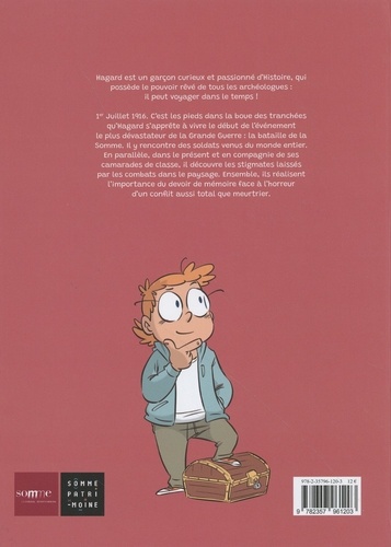 Hagard est un garçon curieux et passionné d'Histoire, qui possède le pouvoir rêvé de tous les archéologues : il peut voyager dans le temps ! 1er juillet 1916. Dans les tranchées françaises, aux côtés de soldats venus du monde entier, Hagard découvre le quotidien des poilus et s'apprête à vivre un des événements clés de la Grande Guerre : le début de la bataille de la Somme. En parallèle, dans le présent, ses amis observent les stigmates laissés dans le paysage par les combats, et réalisent l'importance du devoir de mémoire face à l'horreur d'un conflit aussi global et meurtrier.