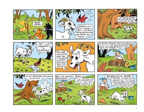 Barbichette veut s'amuser un peu aux dépens des Compères mais elle tombe dans leur piège. Heureusement, le brave Cui-Cui qui volait par là sauve la chèvre blanche. Cependant, Renard et Loup ont bien compris que, s'ils veulent s'emparer des enfants et de leurs amis, il leur faut d'abord supprimer le valeureux oiseau qui veille sur eux. Ils élaborent alors un plan pour s'emparer de Cui-Cui... et c'est finalement Sylvain qui tombe entre leurs griffes ! Alors qu'une pluie diluvienne s'abat sur la forêt, la brave Sylvette part à la recherche de son petit frère...