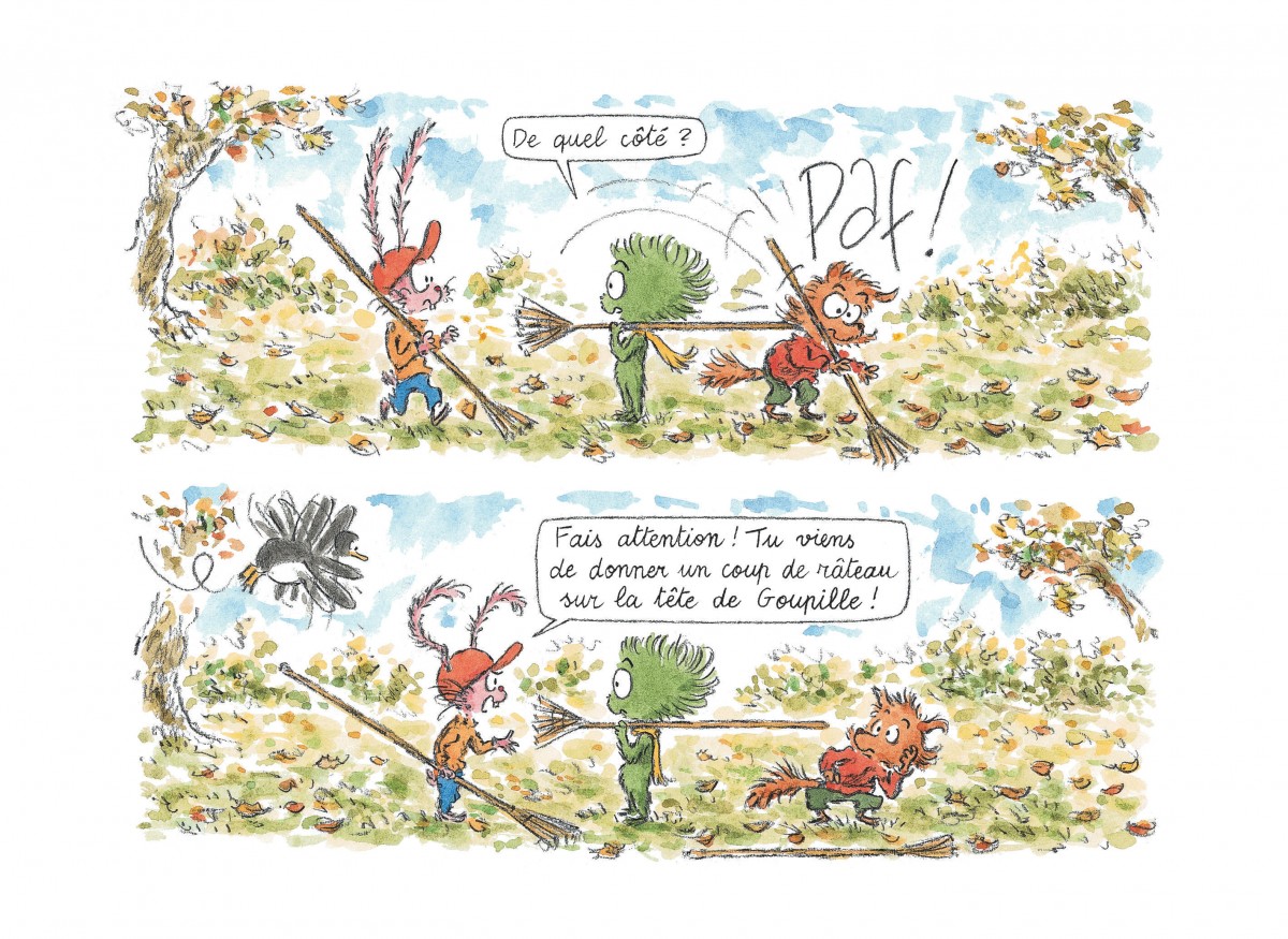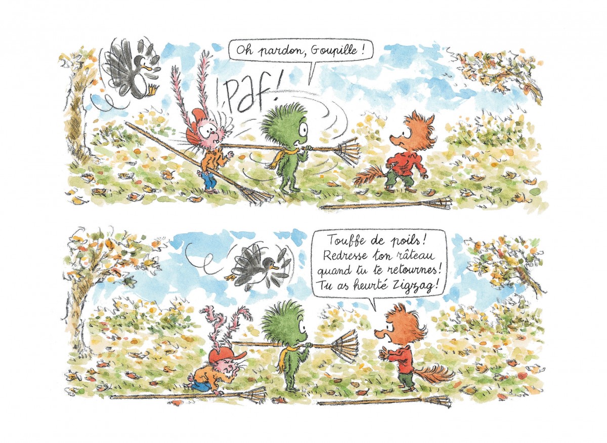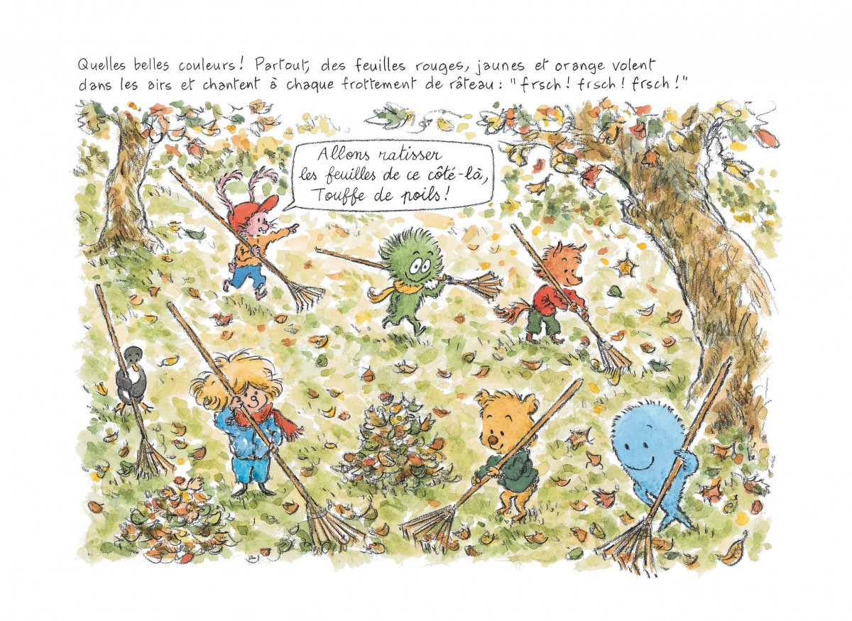 C'est l'automne ! Ana Ana et les doudous enfilent bottes, manteaux et écharpes pour ratisser les feuilles mortes dans le jardin et faire un herbier. Mais Touffe de poils n'en fait qu'à sa tête et ses copains, excédés, l'excluent du jeu.