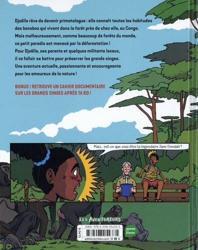 Djoëlle rêve de devenir primatologue : elle connaît toutes les habitudes des bonobos qui vivent dans la forêt près de chez elle, au Congo. Mais malheureusement, comme beaucoup de forêts du monde, ce petit paradis est menacé parla déforestation ! Pour Djoëlle, ses parents et quelques militants locaux, il va falloir se battre pour préserver les grands singes. Une aventure actuelle, passionnante et encourageante pour les amoureux de la nature !