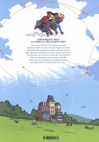 EMBARQUEZ AVEC LA FAMILLE BELLAVENTURE ! A la suite du décès de leur mystérieux père, Donovan, Solène et Lalou se voient léguer une carte permettant de voyager aux quatre coins du monde. Bien décidés à rejoindre leur mère, célèbre cantatrice, au Chili pour lui annoncer la nouvelle, lisse lancent dans une véritable course contre la montre. Mais c'est sans compter sur l'irruption de Sissi, une adolescente inconnue, dans leur villa... .