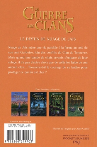 Le repos durement gagné de Nuage de Jais est menacé. Découvrez l'intégrale BD du Destin de Nuage de Jais en couleurs ! Nuage de Jais mène une vie paisible à la ferme au côté de son ami Gerboise, loin des conflits du Clan du Tonnerre. Mais quand une bande de chats errants s'empare de leur refuge, il n'a pas d'autre choix que de solliciter l'aide de son ancien clan... Trouvera-t-il le courage de se battre pour protéger ce qui lui est cher ?
