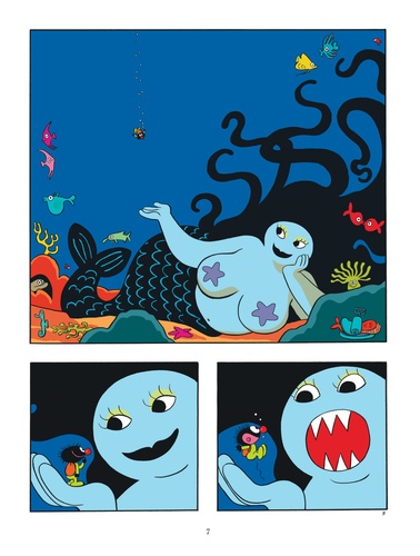 Petit Poilu part à l'école. En chemin, une inondation le précipite dans un vaste océan, demeure de la sirène qui mange tout, la Sirène Gourmande ! Avalé par l'immense femme-poisson, voilà notre Petit Poilu prisonnier dans son énorme estomac ! C'est le début des rencontres qui font rire, qui font peur, qui bousculent... Comment Petit Poilu sortira-t-il du ventre de la Sirène ? Retrouvera-t-il sa maman et son petit lit douillet ? Mystère...