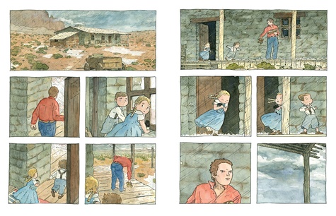 Dans une petite ferme en plein milieu du Far West, une famille subit une tempête spectaculaire. A hauteur d'enfant, on ressent le tonnerre qui surprend, la pluie qui goutte à travers le toit, le vent qui retourne la charrette, les grêlons qui cassent une vitre... La famille sous tension va se serrer les coudes pour affronter cette épreuve jusqu'à ce que la tempête se calme, laissant un désert boueux. Un nouveau terrain de jeux à découvrir après toutes ces émotions.