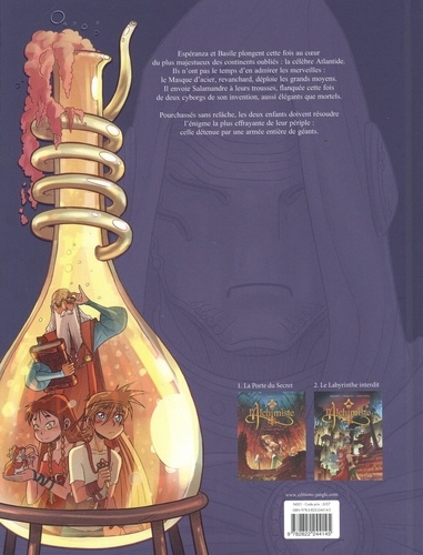 Espéranza et Basile plongent cette fois au coeur du plus majestueux des continents oubliés : la célèbre Atlantide. Ils n'ont pas le temps d'en admirer les merveilles : le Masque d'acier, revanchard, déploie les grands moyens. Il envoie Salamandre à leurs trousses, flanquée cette fois de deux cyborgs de son invention, aussi élégants que mortels. Pourchassés sans relâche, les deux enfants doivent résoudre l'énigme la plus effrayante de leur périple : celle détenue par une armée entière de géants.