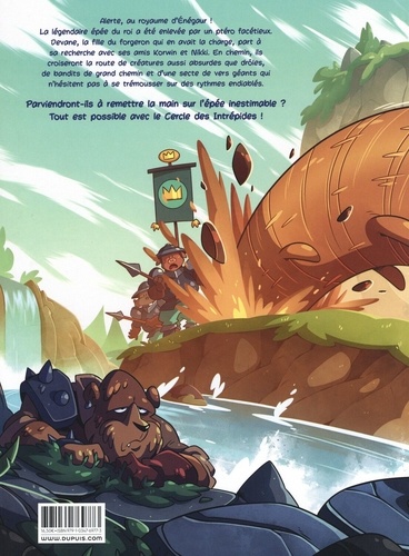 Au royaume d'Enégaur, le roi règne avec fermeté mais son épée, abîmée au combat, a besoin d'être réparée et vient d'être confiée au forgeron du village. Malheureusement, un ptérodactyle farfelu passé par là dérobe l'épée et s'envole vers l'inconnu. Devane, notre héroïne, part à sa poursuite avec ses amis Korwin et Nikki. Ensemble, ils formeront le cercle des Intrépides ! Sur leur route, ils rencontreront des créatures aussi absurdes que drôles, comme ce gaillard qui se sectionne lui-même les membres pour se donner en spectacle ou encore, cette colonie de vers géants qui vénère un dieu des bas-fonds, un gros malabar qui joue au bandit de grand chemin, sans parler des doryphores parieurs ou des tricératops loucheurs. Une épopée drôle, cocasse et décalée pour la jeunesse.