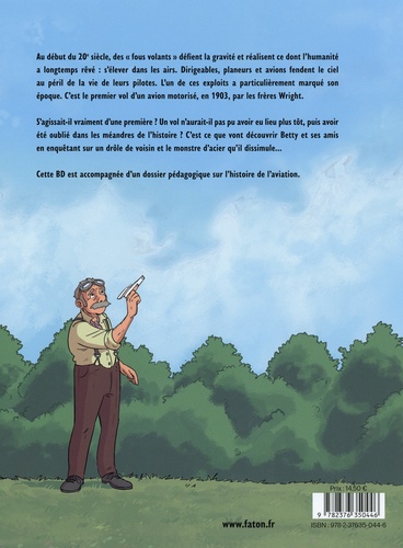 Au début du XXe siècle, des "fous volants" défient la gravité et réalisent ce dont l'humanité à longtemps rêvé : s'élever dans les airs. Dirigeables, planeurs et avions fendent le ciel, au péril de la vie de leurs pilotes. L'un de ces exploits a particulièrement marqué son époque. C'est le premier vol d'un avion motorisé, en 1903, par les frères Wright. S'agissait-il vraiment d'une première ? Un vol n'aurait-il pas pu avoir eu lieu plus tôt, puis avoir été oublié dans les méandres de l'histoire ? Peut-être ! C'est ce que vont découvrir Betty et ses amis, en enquêtant sur un drôle de voisin et le monstre d'acier qu'il dissimule. La BD Le premier vol est accompagnée d'un dossier pédagogique de douze pages sur l'histoire de l'aviation.