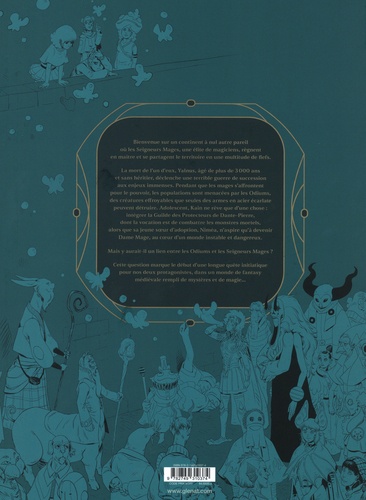 Deux enfants aux destinées que tout oppose. Bienvenue sur un continent à nul autre pareil où les Seigneurs-Mages - une élite de magiciens - règnent en maître et se partagent le territoire en une multitude de fiefs. Quand le richissime Yalnus, âgé de plus de 3000 ans vient à mourir, tous les Mages se réunissent en nourrissant l'avide espoir d'hériter de son immense domaine de Dante-Pierre et de ses habitants. Ces derniers, soumis aux lois des Mages, n'ont bien entendu pas leur mot à dire, au grand dam de Kain, un orphelin de 15 ans qui les déteste par-dessus tout. Alors que Niméa, sa jeune soeur, rêve de les rejoindre et de devenir Dame Mage ! Kain n'a pas totalement tort : alors que les Seigneurs-Mages sont bien à l'abri dans leur tour d'ivoire, la population, elle, subit l'assaut régulier d'effroyables créatures, les Odiums. Dévorant humains ou animaux à leur portée, il n'existe à ce jour qu'une seule manière de les éliminer : les entailler avec un acier confectionné par les Mages eux-mêmes, l'acier écarlate. Kain espère rejoindre " la Guilde des protecteurs " et terrasser tous ces monstres. Mais les attaques d'Odiums ne font que se multiplier mystérieusement depuis des millénaires... Y-aurait-il un lien entre les Odiums et les Seigneurs-Mages ? C'est le début d'une longue quête initiatique dans un monde rempli de dangers, de mystères et de magie... Après Les Semi-Déus, Juliette Fournier revient chez Glénat avec une nouvelle saga de médiévale fantasy pleine de rebondissements qui mêle intrigue politique, suspense et magie ! A ses côtés, Greg Mauny crée un univers graphique époustouflant et développe un large panthéon de créatures et de personnages incarnés. Avec un dessin d'inspiration manga, des couleurs peps et un récit riche en péripéties, cette nouvelle trilogie s'annonce d'ores et déjà comme la série incontournable.