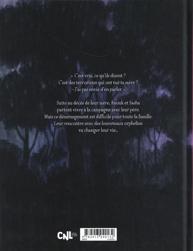 Deux enfants emménagent avec leur père chez un oncle assez rébarbatif suite au décès de leur mère lors d'un attentat. L'oncle qui est chasseur tue une louve. En promenade les enfants trouvent trois petits loups orphelins, ils décident de s'en occuper en cachette. Une histoire touchante, qui aborde pas mal de thèmes difficiles. Les dessins sont splendide. A lire en famille.