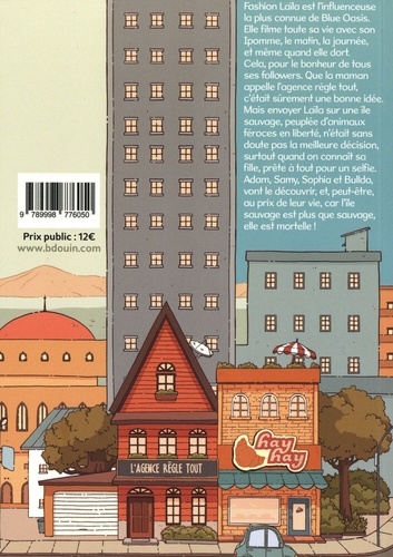 Fashion Laïla est l'influenceuse la plus connue de Blue Oasis. Elle filme toute sa vie avec son Ipomme, le matin, la journée, et même quand elle dort. Cela, pour le bonheur de tous ses followers. Que la maman appelle l'agence régle tout, c'était sûrement une bonne idée. Mais envoyer Laïla sur une île sauvage, peuplée d'animaux féroces en liberté, n'était sans doute pas la meilleure décision, surtout quand on connaît sa fille, prête à tout pour un selfie. Adam, Samy, Sophia et Bulldo, vont le découvrir, et, peut-être, au prix de leur vie, car l'île sauvage est plus que sauvage, elle est mortelle !