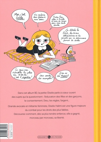 Dans cet album BD, la petite Gisèle parle à coeur ouvert des sujets qui la questionnent : l'éducation des filles et des garçons, le consentement, Dieu, les règles, l'argent... Grande avocate et militante féministe, Gisèle Halimi est une figure majeure du combat pour les droits des plus faibles. Découvrez comment, dès sa plus tendre enfance, elle a gagné, morceau par morceau, sa liberté.