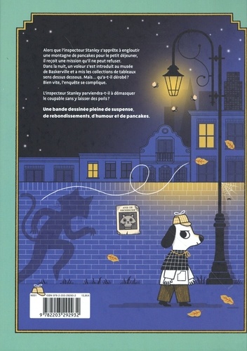 Une BD pleine de suspense, de rebondissements, d'humour et de pancakes. Alors que l'inspecteur Stanley s'apprête à engloutir une montagne de pancakes pour le petit-déjeuner, il reçoit une mission qu'il ne peut refuser. Dans la nuit, un voleur s'est introduit au musée de Baskerville et a mis les collections de tableaux sens dessus dessous. Mais... qu'a-t-il dérobé ? Bien vite, l'enquête se complique. L'inspecteur Stanley parviendra-t-il à démasquer le coupable sans y laisser des poils ? Une nouvelle série de bande dessinée trépidante et facile à lire : chaque tome peut se lire individuellement, L'histoire est suivie d'une double page documentaire, ici sur l'artiste Piet Mondrian.