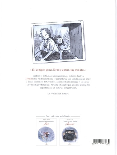 Septembre 1943, nées juives comme des millions d'autres, Mylaine et sa petite soeur Lisou se cachent avec leur famille dans un chalet à douze kilomètres de Grenoble. Mais le destin les rattrape et les sépare : Lisou s'échappe tandis que Mylaine est arrêtée par les Nazis avant d'être déportée dans un camp de concentration en Pologne. Ce récit est son histoire.