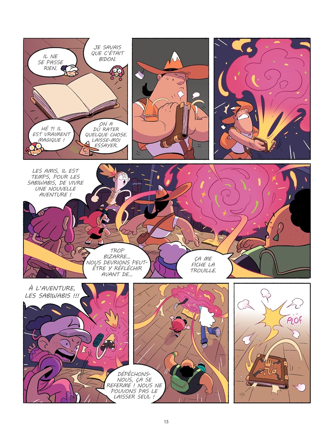 Rejoins les Sabiwabis et embarque pour la plus grande aventure de ta vie ! Si on te disait qu'il est possible de partir à la découverte d'un monde fantastique, peuplé de créatures incroyables et de lieux mystérieux, accompagné(e) par une bande de jeunes et sympathiques aventuriers, tu n'y croirais pas. C'est pourtant possible avec les Sabiwabis ! Ils sont sept, mais ils ont besoin d'un compagnon supplémentaire pour entreprendre leur quête. Ose ouvrir cette BD et deviens le ou la huitième Sabiwabi. Tu pourras alors crier d tue-tête, avec eux, leur cri de guerre : Sabii, sabiii, sabiwabiiiis !