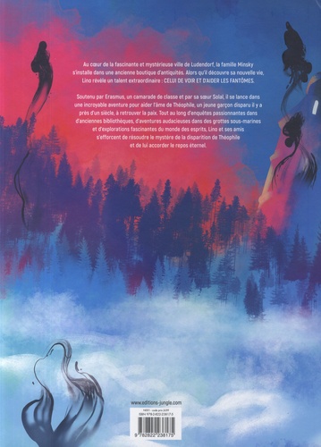 Au coeur de la fascinante et mystérieuse ville de Ludendorf, la famille Minsky s'installe dans une ancienne boutique d'antiquités. Alors qu'il découvre sa nouvelle vie, Lino révèle un talent extraordinaire : CELUI DE VOIR ET D'AIDER LES FANTÔMES. Soutenu par Erasmus, un camarade de classe et par sa soeur Solal, il se lance dans une incroyable aventure pour aider l'âme de Théophile, un jeune garçon disparu il y a près d'un siècle, à retrouver la paix. Tout au long d'enquêtes passionnantes dans d'anciennes bibliothèques, d'aventures audacieuses dans des grottes sous-marines et d'explorations fascinantes du monde des esprits, Lino et ses amis s'efforcent de résoudre le mystère de la disparition de Théophile et de lui accorder le repos éternel.