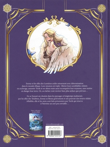 Emmy et les elfes des Lumières exilés retournent avec détermination dans le monde elfique. Leur mission est triple : libérer leurs semblables réduits en esclavage, anéantir Torik et ses sbires mais aussi reconquérir leur royaume, sans mettre en danger leur terre. Or, ces tâches vont s'avérer bien plus ardues que prévues... En se frayant un chemin dans les paysages si longtemps malmenés par les elfes des Ténèbres, Emmy se blesse grièvement et son pouvoir s'en trouve réduit. Affaiblie, elle et les siens sont faits prisonniers par Torik qui réserve à l'héroïne un sort peu enviable...