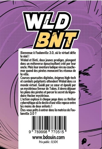 Bienvenue à Foulanville 3. 0, où le virtuel défiie le réel ! Walad et Binti, deux jeunes prodiges, plongent dans un métavers époustoufllant créé par leur oncle. Mais leur aventure ludique vire au cauchemar quand des pirates menacent les réseaux de la ville. Courses-poursuites digitales, énigmes high-tech et combats palpitants attendent Walad dans ce monde virtuel. Guidé par sa soeur et épaulé par un mystérieux livreur de tokens, il devra déjouer les plans des pirates et percer le secret du légendaire hacker mystérieux. L'action explose à chaque page dans ce thriller cybernétique où le destin d'une ville repose entre les mains de deux enfants ! Etes-vous prêts à entrer dans la matrice de Foulanville 3. 0 ?