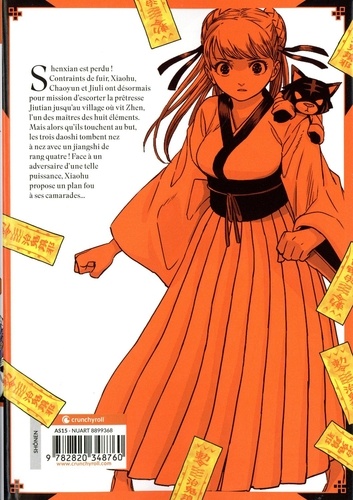 Shenxian est perdu ! Contraints de fuir, Xiaohu, Chaoyun et Jiuli ont désormais pour mission d'escorter la prêtresse Jiutian jusqu'au village où vit Zhen, l'un des maîtres des huit éléments. Mais alors qu'ils touchent au but, les trois daoshi tombent nez à nez avec un jiangshi de rang quatre ! Face à un adversaire d'une telle puissance, Xiaohu propose un plan fou à ses camarades...