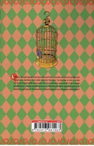 Hol Horse accepte de retrouver le perroquet perdu d'une vieille connaissance. Après avoir vu une prédiction de Tohth, il embarque avec lui Boingo jusque dans la ville S. C'est lorsqu'il entend quelqu'un prononcer une phrase dite par Dio autrefois, que Hol Horse voit avec horreur une voiture lui foncer dessus !