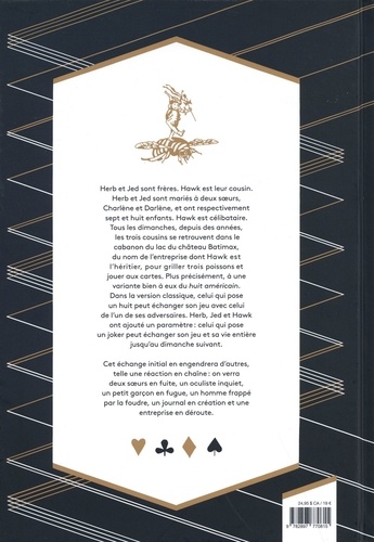 Herb et Jed sont frères. Hawk est leur cousin. Herb et Jed sont mariés à deux soeurs, Charlène et Darlene, et ont respectivement sept et huit enfants. Hawk est célibataire. Tous les dimanches, depuis des années, les trois cousins se retrouvent dans le cabanon du lac du château Batimax, du nom de l'entreprise dont Hawk est l'héritier, pour griller trois poissons et jouer aux cartes. Plus précisément, à une variante bien à eux du huit américain. Dans la version classique, celui qui pose un huit peut échanger son jeu avec celui de l'un de ses adversaires. Herb, Jed et Hawk ont ajouté un paramètre : celui qui pose un joker peut échanger son jeu et sa vie entière jusqu'au dimanche suivant. Cet échange initial en engendrera d'autres, telle une réaction en chaîne : on verra deux soeurs en fuite, un oculiste inquiet, un petit garçon en fugue, un homme frappé par la foudre, un journal en création et une entreprise en déroute.