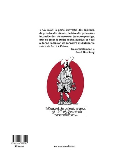 "Ca valait la peine d'investir des capitaux, de prendre des risques, de faire des promesses inconsidérées, de mettre en jeu notre prestige, bref de créer le studio Idéfix, puisque ça nous a donné l'occasion de connaître et d'utiliser le talent de Patrick Cohen. Très amicalement." René Goscinny