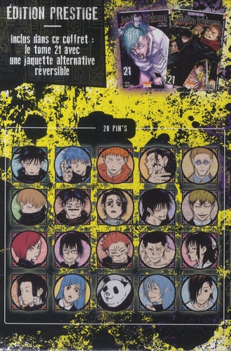 Un contenu haut de gamme, exclusivement destiné à la France, après son exploitation sur le marché japonais ! Le coffret contient : - Le tome 21 Jujutsu Kaisen avec une jaquette alternative réversible - Un set de 20 pin's métalliques réalisés en collaboration avec l'éditeur japonais Résumé : Les affrontements violents font rage dans l'arène de Sendai... Après Megumi et Yuji à Tokyo, c'est à Yuta, l'exorciste le plus brillant de sa génération, d'entrer en scène ! Le voilà aux prises avec trois ennemis aux pouvoirs des plus dévastateurs... De son côté, Kinji rencontre un certain Charles Bernard, un jeune mangaka désabusé qui le supplie de se battre contre lui afin de lui redonner l'inspiration... Il n'en fallait pas plus pour que l'élève de terminale ne déploie son redoutable territoire !