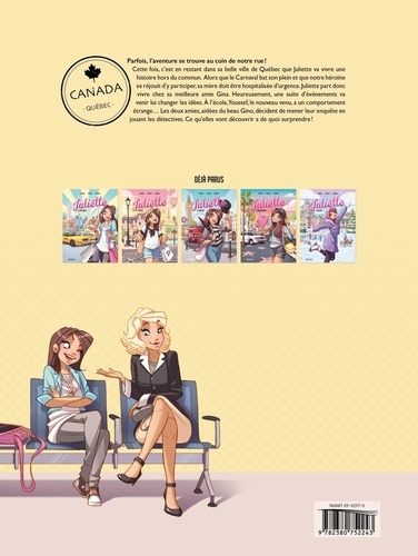 Parfois, l'aventure se trouve au coin de notre rue ! Cette fois, c'est en restant dans sa belle ville de Québec que Juliette va vivre une histoire hors du commun. Alors que le Carnaval bat son plein et que notre héroïne se réjouit d'y participer, sa mère doit être hospitalisée d'urgence. Juliette part donc vivre chez sa meilleure amie Gina. Heureusement, une suite d'événements va venir lui changer les idées. A l'école,Youssef, le nouveau venu, a un comportement étrange... Les deux amies, aidées du beau Gino, décident de mener leur enquête en jouant les détectives. Ce qu'elles vont découvrir a de quoi surprendre !