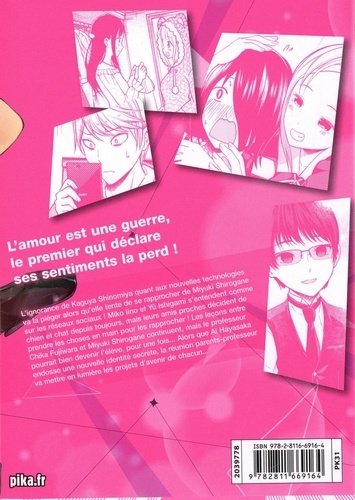 L'ignorance de Kaguya Shinomiya quant aux nouvelles technologies va la piéger alors qu'elle tente de se rapprocher de Miyuki Shirogane sur les réseaux sociaux ! Miko Iino et Yû Ishigami s'entendent comme chien et chat depuis toujours, mais leurs amis proches décident de prendre les choses en main pour les rapprocher ! Les leçons entre Chika Fujiwara et Miyuki Shirogane continuent, mais le professeur pourrait bien devenir l'élève, pour une fois... Alors que Ai Hayasaka endosse une nouvelle identité secrète, la réunion parents-professeur va mettre en lumière les projets d'avenir de chacun...