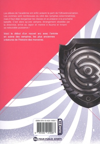 Quand les serial killers combattent le mal ! Le nouveau cocktail détonant du dessinateur de Red Eyes Sword ! Les élèves de l'académie ont enfin anéanti le parti de l'Ultraréincarnation. Les victimes sont nombreuses du côté des nymphes exterminatrices, mais il faut déjà réorganiser les classes et se préparer à la prochaine bataille. C'est alors qu'une vampire, étrangement obsédée par la directrice, arrive au Japon et montre à Asuma et Innami sa redoutable puissance ! Voici le début d'un nouvel arc avec l'entrée en scène des vampires, les plus anciennes créatures de l'histoire des monstres.