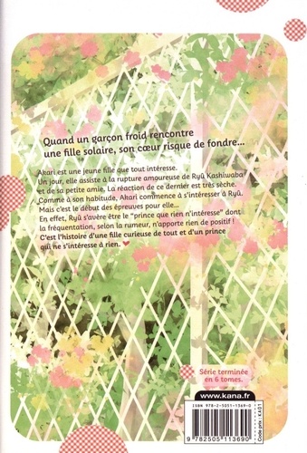 Quand un garçon froid rencontre une fille solaire, son coeur risque de fondre... Akari est une jeune fille que tout intéresse. Un jour, elle assiste à la rupture amoureuse de Ryû Kashiwaba et de sa petite amie. La réaction de ce dernier est très sèche. Comme à son habitude, Akari commence à s'intéresser à Ryû. Mais c'est le début des épreuves pour elle... En effet, Ryû s'avère être le "prince que rien n'intéresse" dont la fréquentation, selon la rumeur, n'apporte rien de positif ! C'est l'histoire d'une fille curieuse de tout et d'un prince qui ne s'intéresse à rien.
