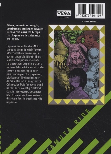Dieux, monstres, magie, combats et intrigues royales... Bienvenue dans les temps mythiques de la naissance du Japon. Capturés par les Boucliers Noirs, la troupe d'élite du roi de Yamato, Monko et Takeru parviennent à gagner la capitale. Bientôt libres, les deux compagnons de route se rapprochent du palais chacun à sa façon. Takeru doit en effet rendre compte de sa campagne à son père, tandis que, plus surprenant, Monko reçoit l'insigne honneur de présenter son art au grand roi Oshirowake. Mais l'entrevue prend un tour aussi violent qu'inattendu. Dans le même temps, des entités liées à Uzume s'infiltrent en toute discrétion dans la grouillante ville impériale...