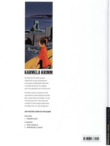 Karmela Krimm était la jeune inspectrice la plus prometteuse de la police de Marseille. Mais lors d'une opération musclée, elle a abattu la personne qu'il ne fallait pas : le fils d'un notable de la ville. Karmela a perdu sa place et s'est reconvertie comme détective privée. Elle a aussi perdu ses idéaux. Mais dans les eaux troubles où elle navigue désormais, les idéaux sont un luxe dangereux.